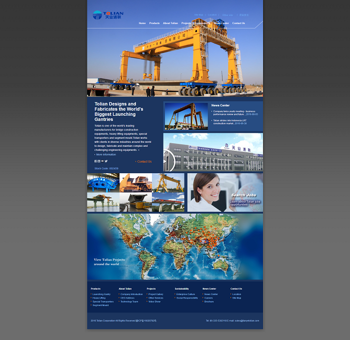 秦皇島天業(yè)通聯(lián)重工科技有限公司是中國國內(nèi)知名的集研發(fā)設(shè)計、制造安裝、銷售服務為一體的重工裝備制造企業(yè),是上市公司秦皇島天業(yè)通聯(lián)重工股份有限公司的全資子公司(股票代碼:002459),公司年銷售額已超過數(shù)億元。 公司致力于大型架橋施工設(shè)備、各種大型門式起重機、大型跨式搬運機、特種運輸車輛、大型管片模具的研制、生產(chǎn)和銷售,并擁有起重運輸設(shè)備的安裝、改造和維修A級資質(zhì)。通聯(lián)公司提供的設(shè)備具有極高的安全性、技術(shù)的先進性和高性價比,在國內(nèi)外眾多的重大基礎(chǔ)施工項目上得到了廣泛應用,是中國大的相關(guān)設(shè)備制造商。參與了蘇通跨海大橋、上海磁懸浮、秦沈客運專線、京津城際快速鐵路、廣州輕軌、北京地鐵13號線、廣珠軌道交通、京滬高鐵、武廣專線、京石專線、武廣專線等重點項目的建設(shè)。在國際市場上,通聯(lián)公司的產(chǎn)品也已經(jīng)進入韓國、印度尼西亞、泰國、科威特、巴基斯坦、新加坡、斯里蘭卡和印度市場,受到了國際買家的一致好評。