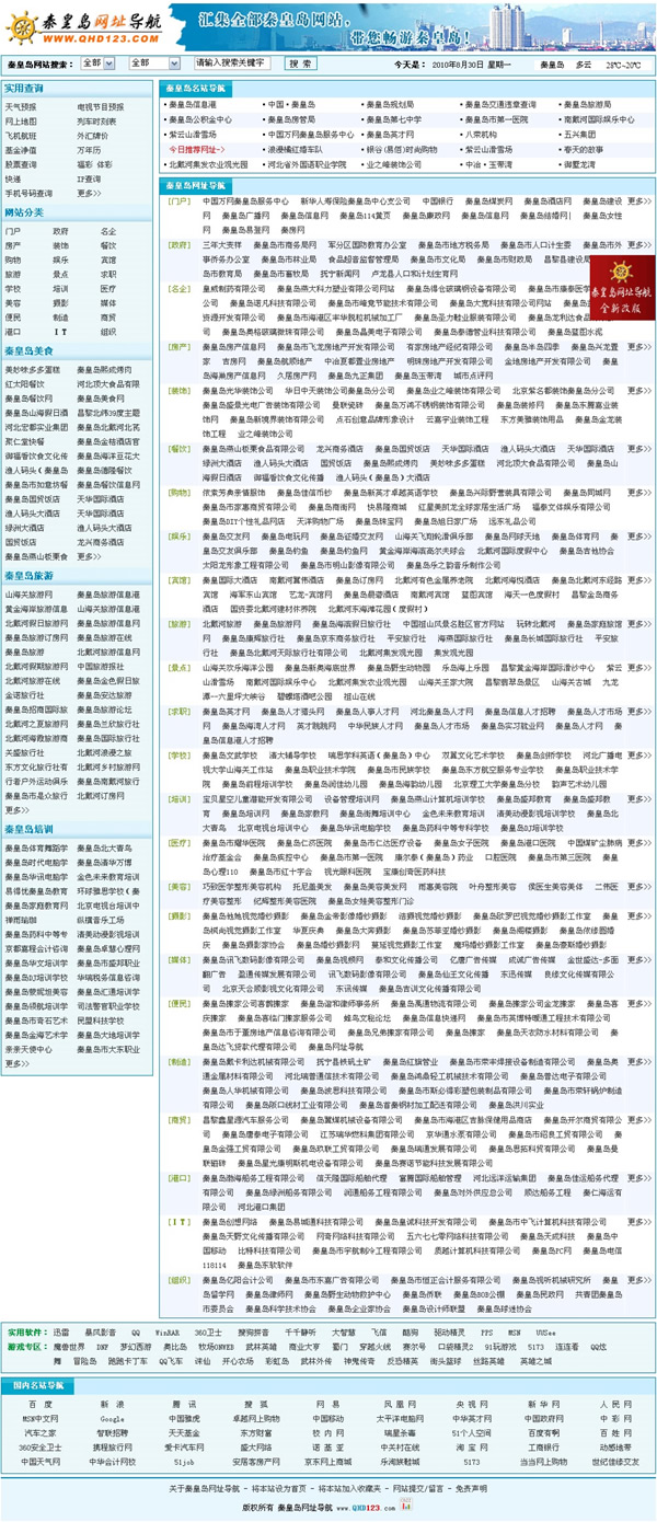 秦皇島網址導航致力于宣傳推廣秦皇島本地的網站,在這里,您可以方便、快速的找到關于秦皇島地區(qū)的所有網站?梢哉f,秦皇島網址導航是您認識、了解秦皇島的窗口。不斷搜集、整理及更新秦皇島地區(qū)的相關網址是我們的工作,歡迎您常來秦皇島網址導航做客,使她成為您的知心朋友。
