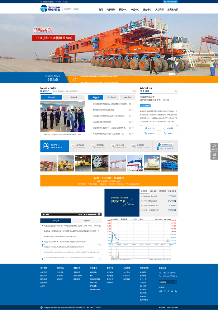 秦皇島天業(yè)通聯(lián)重工股份有限公司網(wǎng)站改版上線!